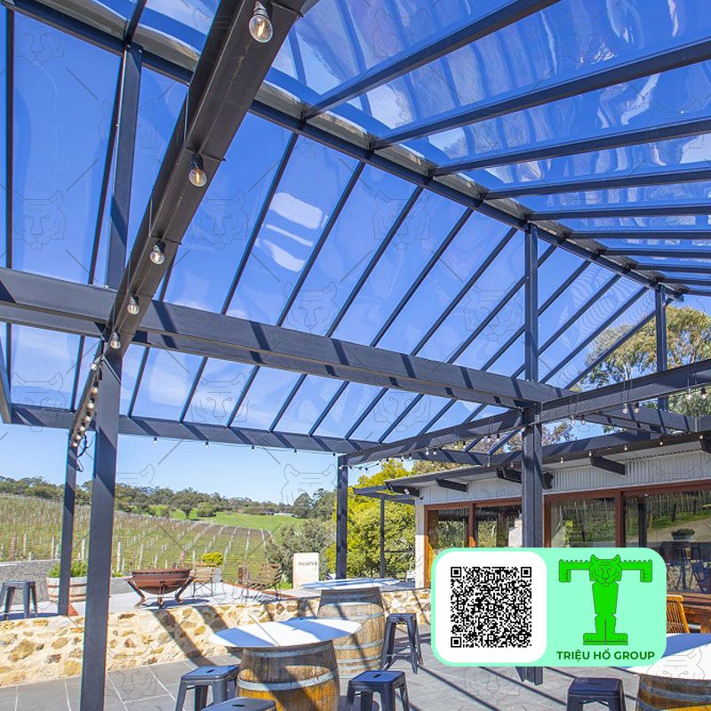 Tận dụng tối đa ánh sáng tự nhiên vào ban ngày để tạo ra không gian rực rỡ, thoáng đãng và tràn đầy năng lượng, đồng thời vẫn đảm bảo khả năng che chắn khỏi mưa và hạn chế nhiệt độ nóng bức một cách hiệu quả.