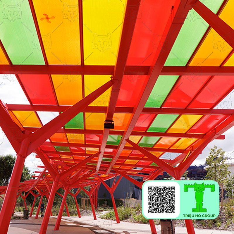 Tận dụng tối đa nguồn sáng tự nhiên trong suốt thời gian ban ngày, không gian trở nên rực rỡ, thoáng đãng và tràn đầy sinh khí, đồng thời vẫn đảm bảo khả năng che chắn khỏi mưa gió và giảm nhiệt hiệu quả.