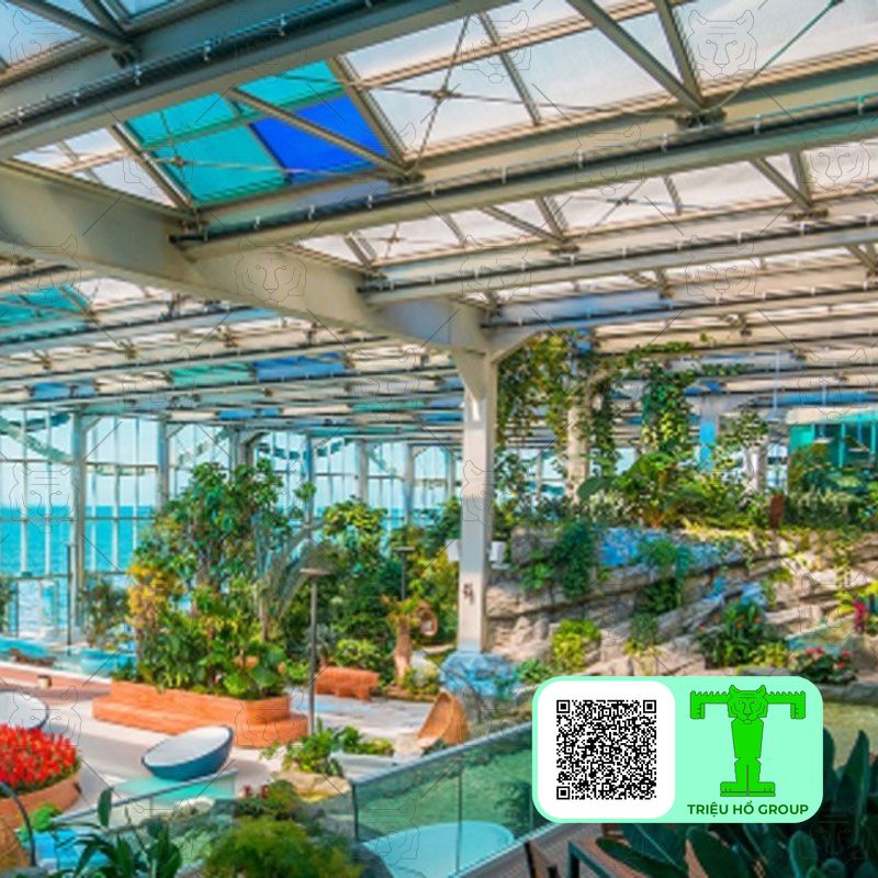 Tối ưu hóa việc tận dụng ánh sáng tự nhiên trong suốt ngày, tạo ra không gian thoáng đãng và tràn đầy ánh sáng, đồng thời vẫn đảm bảo khả năng che chắn khỏi mưa và giảm nhiệt độ, mang lại sự thoải mái tối đa cho người sử dụng.